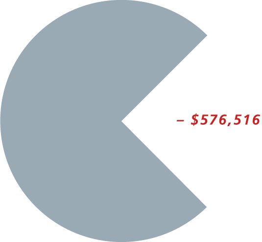 The cost of fees and under-performance over time can be significant. Given a $1 million portfolio, the pie charts below illustrate the erosion of earnings over the last ten year period compared to the benchmark Via Four portfolio. Via Four fees are among the lowest in the industry, with no additional charges or commissions. Custodial transaction fees are approximately $25 per mutual fund purchase and sale. Total custodial transaction fees per year for accounts that require annual rebalancing (under $1 million) are approximately $225 and $900 for accounts that require quarterly rebalancing (greater than $1 million). Via Four never places client investments in “loaded” funds or stocks requiring sales fees.